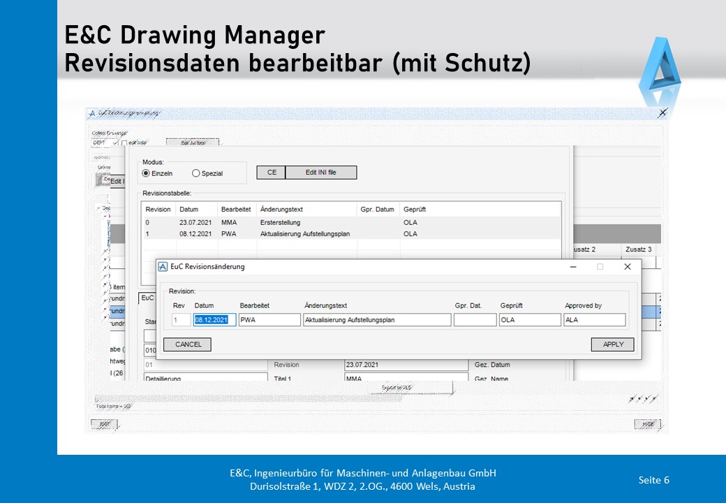 - Revision- und Exportsteuerung aus einer Maske heraus ermöglichen.